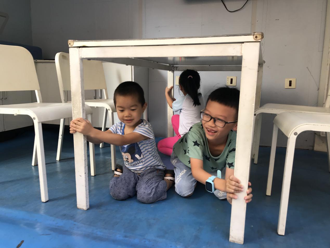 兒童平安訓練營活動共有5個版塊,分別是動感地帶、火眼金睛、鐵壁鋼手、浮力盔甲、應急包。動感地帶活動版塊的主體是地震體驗平臺,通過安全教育車的地震體驗功能,社區(qū)居民成功學會地震躲避知識要點:規(guī)避易倒塌、易破碎、已墜落三類物品;桌下/床下躲避跪、躲、抓三大要點。浮力盔甲是當身邊發(fā)生溺水或者存在溺水隱患時,可以利用身邊常用的物品比如礦泉水瓶和衣服制作緊急救生衣。鐵壁鋼手是災害發(fā)生、救援難以及時到達情況下,利用身邊的物品,對手臂骨折者進行簡易包扎?;鹧劢鹁κ窃谠S多大地震、火災和意外傷害中,教會學生認識一些室內(nèi)、室外的常見安全隱患。
