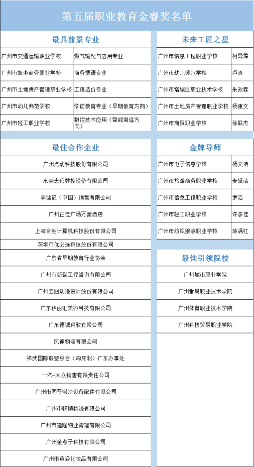 注:“第五屆職業(yè)教育金睿獎”名單由線上點贊數據統(tǒng)計及線下專家評審團相關綜合評定意見得出。