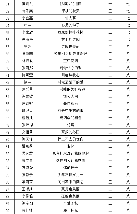 深圳市小學(xué)、初中、高中、大學(xué)在校學(xué)生,教師,文學(xué)愛(ài)好者。