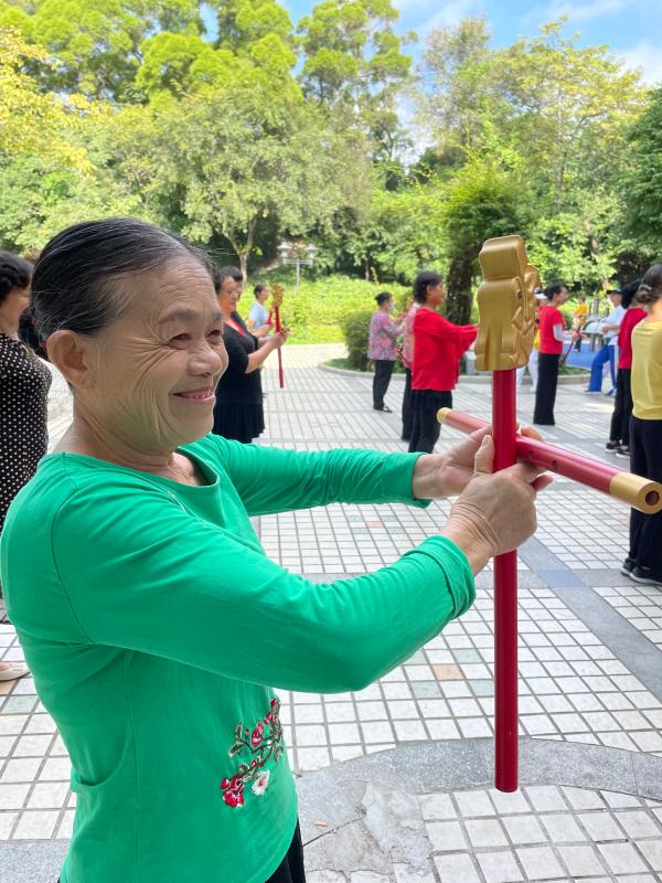 讀特客戶端·深圳新聞網2021年11月26日訊(記者 陳彬)這一兩個月來,每天早上,有一群精氣神十足的阿姨們,手持一種舞蹈道具,在南頭古城臨中山公園的地方,非常有意思地跳著一種舞蹈,成為了南頭古城的一道風景。在她們舞蹈時,時不時會有路人走近好奇地問:阿姨,你們這是在跳一種韓國舞蹈、還是日本舞蹈?她們會指著旁邊的KT板展架說:好好看看那上頭,學習學習我們中國文化。