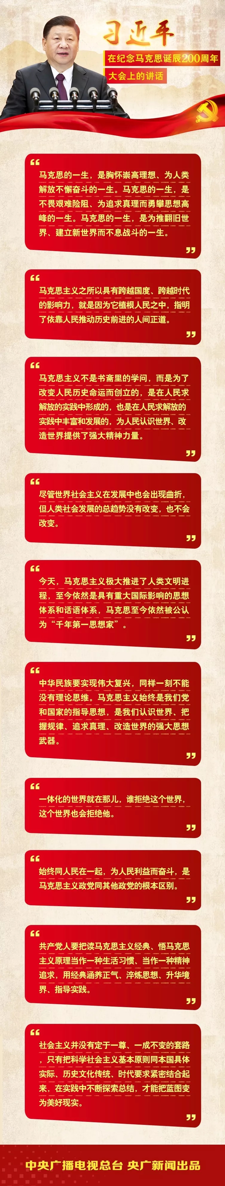 2018年5月4日上午10時,紀念馬克思200周年誕辰大會在人民大會堂舉行。中共中央總書記、國家主席、中央軍委主席習近平出席大會,并發表重要講話。