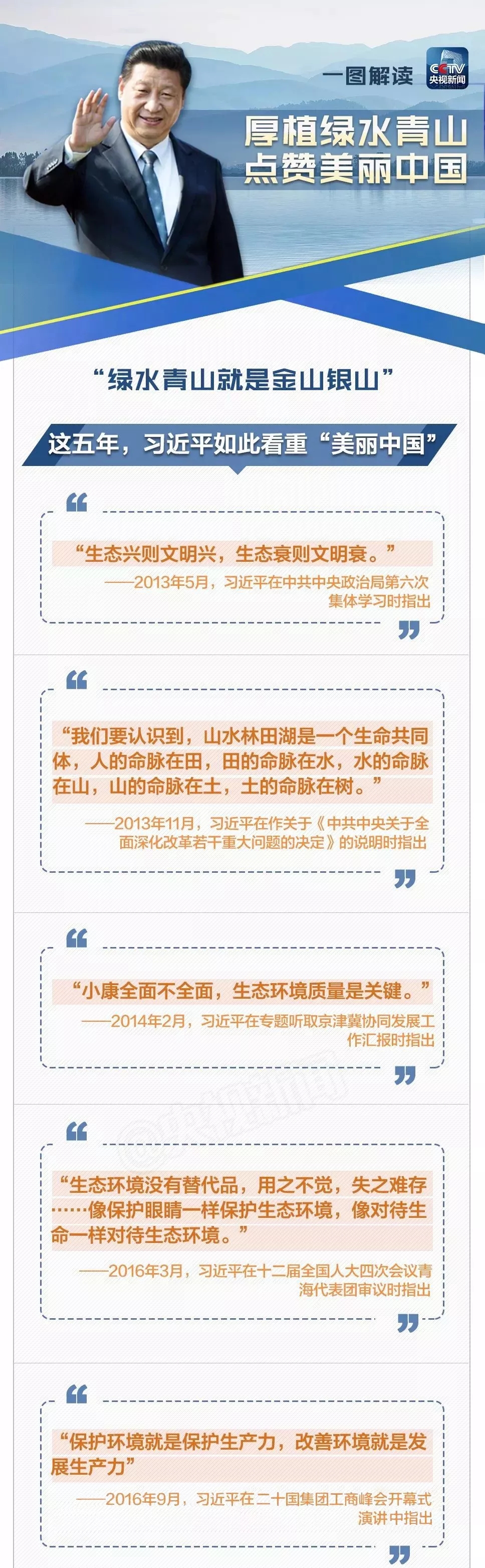 在總書記的引領之下,十八大以來我國建立并實施中央環境保護督察制度,大力推動綠色發展,深入實施大氣、水、土壤污染防治三大行動計劃,率先發布《中國落實2030年可持續發展議程國別方案》,實施《國家應對氣候變化規劃(2014-2020年)》,推動生態環境保護發生歷史性、轉折性、全局性變化。生態環境持續改善,碩果累累: