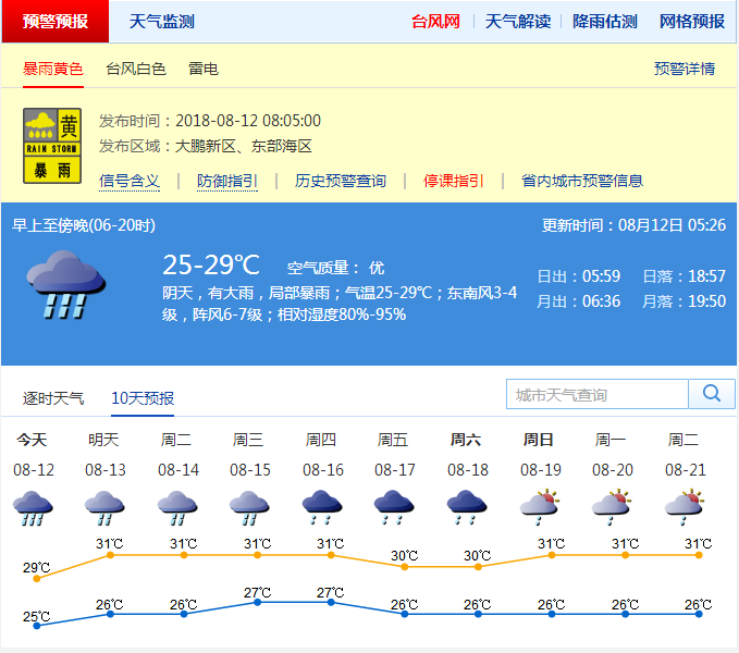 記者從市氣象局了解到,8月10日夜間至11日白天,全市出現了中到大雨和局部暴雨,最大雨量出現在鹽田街道三洲田站(78.1毫米);沿海和高地記錄到7到8級陣風,全市最大陣風出現在羅湖區大梧桐站(17.9m/s)。