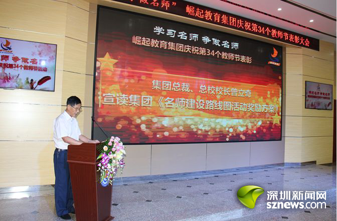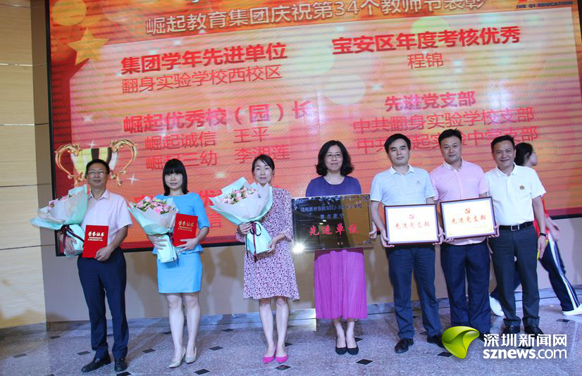 深圳新聞網(wǎng)訊 (記者 曹園芳)2018年9月10日,崛起教育集團在崛起實驗中學舉行慶祝第34個教師節(jié)暨表彰大會。崛起教育集團董事局主席林良浩、集團旗下各學校領導、優(yōu)秀教師代表、教職工代表,以及深圳市寶安區(qū)教育局副局長、寶安區(qū)教育科學研究院院長、寶安區(qū)教育局民辦教育管理科科長、寶安區(qū)民辦教育協(xié)會秘書長、寶安區(qū)教育局第一學區(qū)教育辦主任、寶安區(qū)教育局第三學區(qū)教育辦主任等來自社會各屆的領導、嘉賓出席了大會。