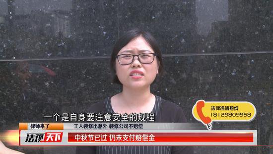 中秋節(jié)已經(jīng)過去3天了,截至記者發(fā)稿,蜂巢裝飾有限公司仍未支付給受傷工人朱先生第一筆賠償金。工友朱先生已經(jīng)很寒心,他說自己怎么都想不到蜂巢裝飾公司會這樣沒有誠信,《法觀天下》嘉賓律師趙乙橋表示,根據(jù)《深圳市建筑施工行業(yè)參加工傷保險的管理辦法》,她建議施工方能夠及時的給工人購買意外保險,如遇類似的意外可以有效地分擔(dān)賠償。(記者鄭興)