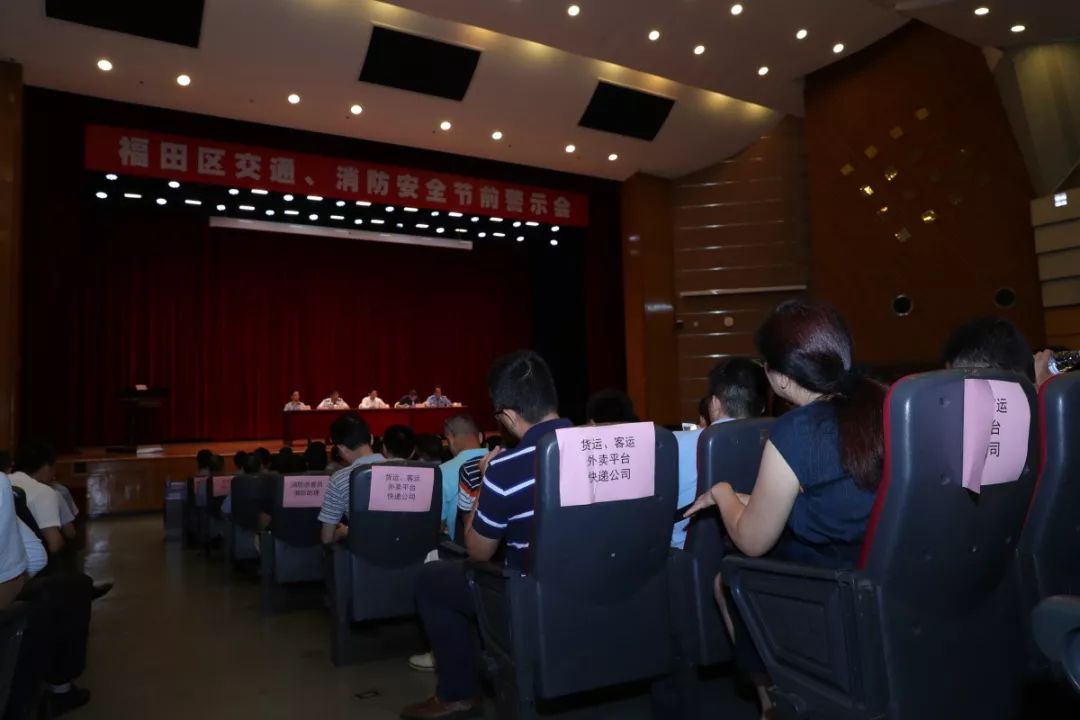 在國慶節即將到來之際,為加強交通事故和火災的警示教育,切實做好節日期間的安保工作,福田區于9月29日上午,在福田會堂召開交通暨消防安全節前警示會,通過壓實營運企業和物業等涉及企業的安全生產主體責任,降低交通事故和火災的發生,維護轄區的平安、穩定、有序。