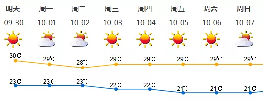 國慶假期期間廣東省同樣天氣平穩,天氣晴好干燥,粵東沿海和海面有6-7級大風,6-7日巴士海峽、南海東北部海面、臺灣海峽將有7-10級大風。全國大部地區以晴好天氣為主,無持續性霧或霾,北方多冷空氣活動,西南地區陰天天氣較多,東部海區和臺灣島受臺風影響可能有較大風雨。