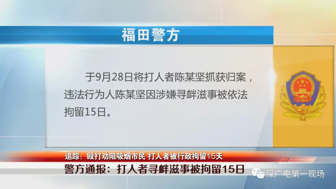深圳一男子餐廳內勸阻吸煙反被毆打,打人者的處罰來了!
