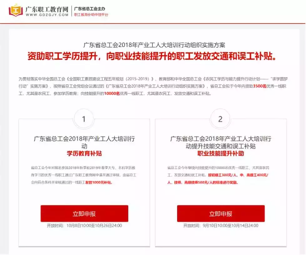 為提高我省產業工人隊伍素質,幫助更多產業工人提升技能水平,按照省總工會黨組會議通過的《廣東省總工會2018年產業工人大培訓行動組織實施方案》,省總工會繼續向10000名技能提升的優秀產業工人發放交通和誤工補貼。取得職業資格證書可獲300~500元補貼,名額有限,先到先得!