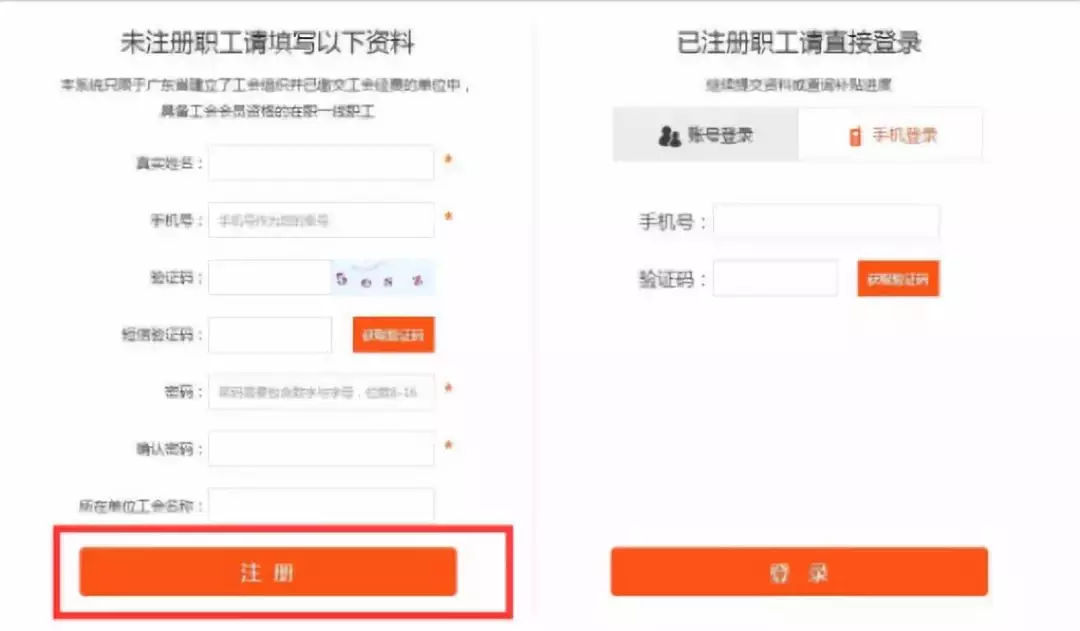 1.新注冊職工必須填寫完整信息--點擊提交資料--完成注冊,系統自動跳轉領取補貼頁面;