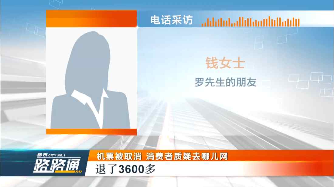 羅先生的朋友錢女士表示,她的機票總價7000多,退了3600多,是去哪兒網賠付給她的。