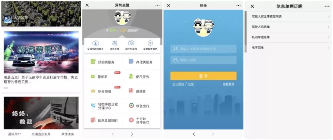 搜索生活號“深圳交警” →登錄星級用戶 →選擇“信息單據證明” →選擇需要打印的證明類型