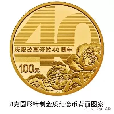 背面圖案為數字“40”造型與牡丹花組合設計,并刊“慶祝改革開放40周年”字樣及面額。