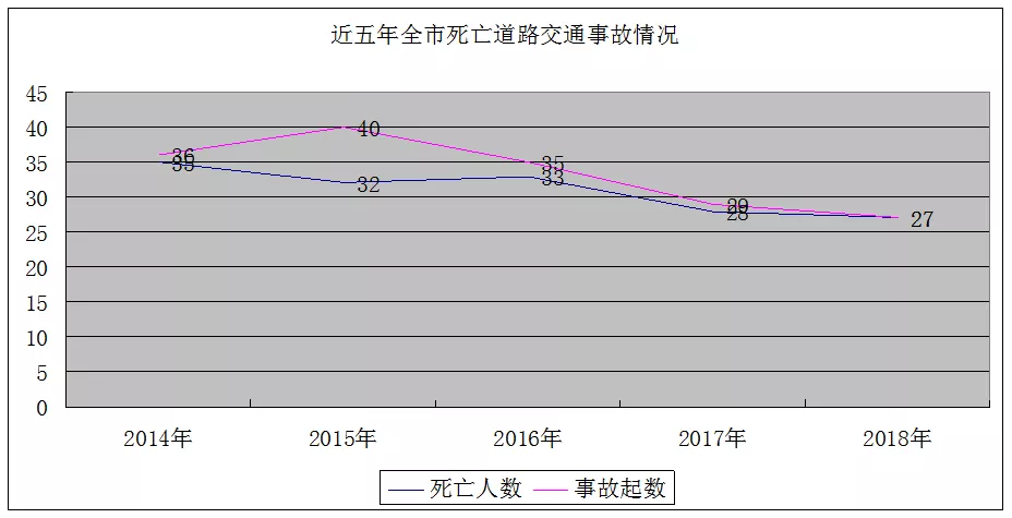 2014年至2018年春運,近五年的春運期間我市共發生死亡道路交通事故156起、死亡168人。其中,2014年發生35起,2015年32起,2016年33起,2017年28起,2018年27起,呈逐年平穩下降趨勢。