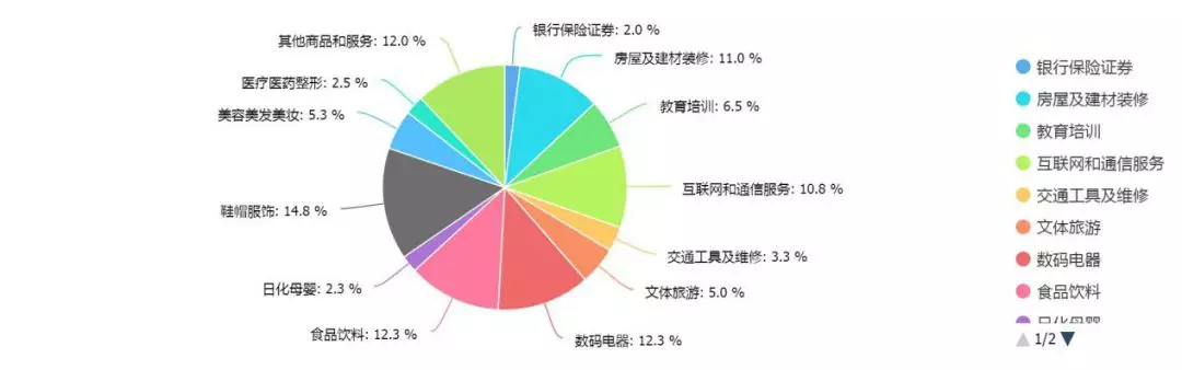 在調查的行業中,受訪者普遍反映消費侵權主要集中在鞋帽服飾、數碼電器、食品飲料、房屋及建材裝修、互聯網和通訊服務行業,這些行業的消費維權數據均超過10%,而鞋帽服飾行業的侵權行為最為常見,比例高達14.8%。