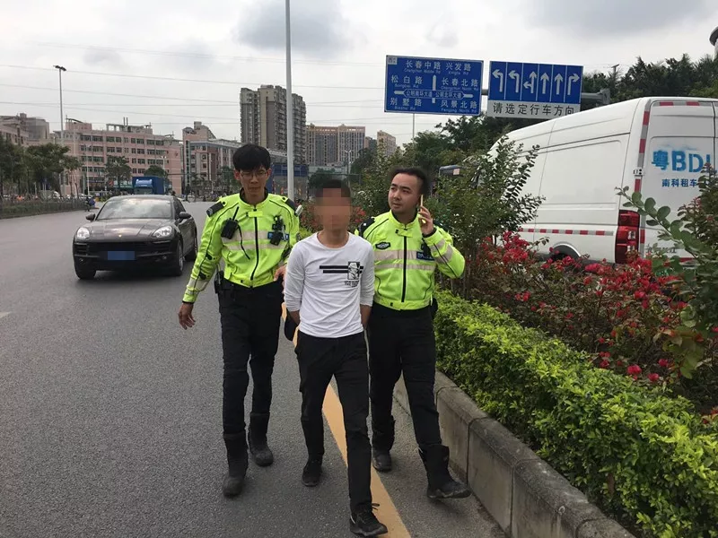 可出人意料的是,該車駕駛員見到交警鐵騎出現竟立即棄車逃跑?!鐵騎隊員一路追至百利紙盒廠路段才成功控制住當事人!