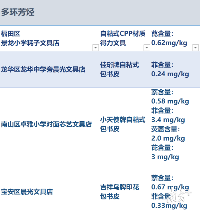 “可以看到,檢測出含有鄰苯二甲酸酯和多環芳烴的樣本多為自粘式包書皮。”該院化工產品檢測所高級工程師王欣說。
