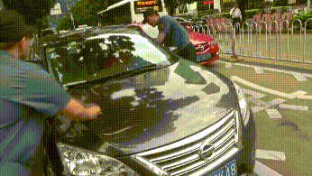 執法人員立刻駕駛執法車輛進行攔截,隨后在一紅綠燈路口將車輛攔停,執法人員再次要求司機下車接受檢查。