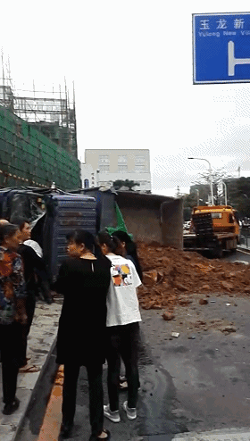 羅湖一渣土車道路側(cè)翻,車頭已嚴(yán)重變形!目擊者:有行人被壓