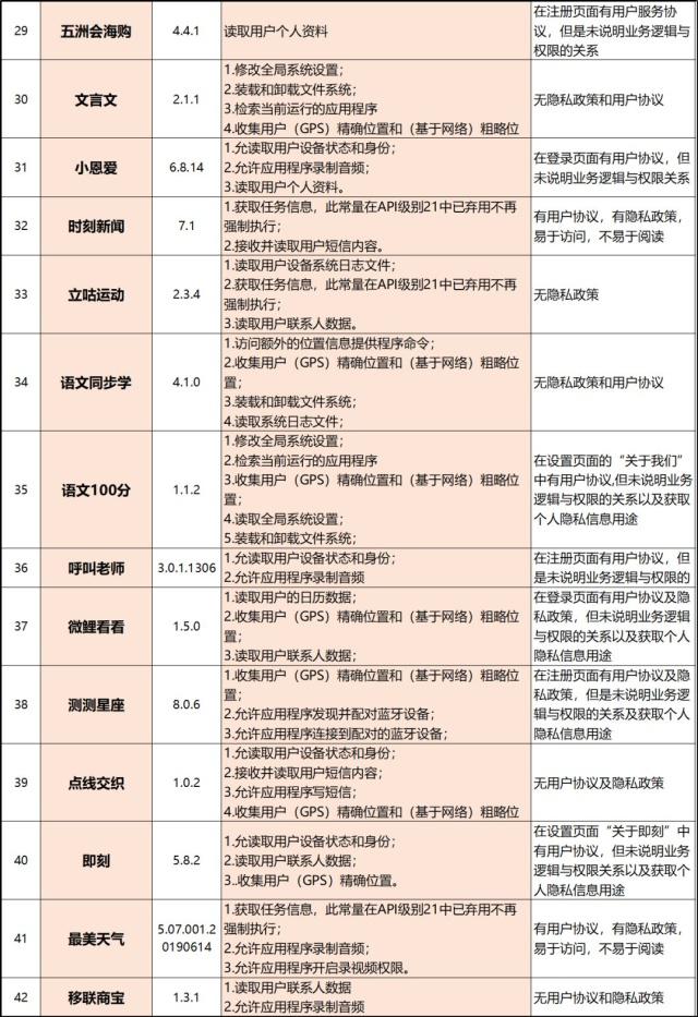 深圳特區報廣州7月4日電 根據公安部“凈網2019”專項行動和中央網信辦、工信部、公安部、市場監管總局四部委關于開展APP違法違規收集使用個人信息專項治理行動部署,廣東省公安機關近期持續開展2019年第二季度超范圍收集用戶信息APP清理整治工作,共監測發現1048款APP存在超范圍收集用戶信息行為。其中,“酷狗音樂”“藝龍旅行”“語文100分”等42款APP,存在超范圍讀取用戶通話記錄、短信或彩信,收集用戶通訊錄、用戶設備上已知賬號,超權限使用用戶設備麥克風等突出安全問題。目前,有關監測情況已上報公安部通報屬地公安機關開展清理整治。