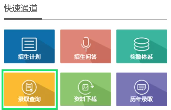 滾動鼠標下拉找到位于頁面右側的快速通道,點擊“錄取查詢”。