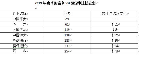 22日,2019年《財富》世界500強排名發布,深圳7家企業上榜