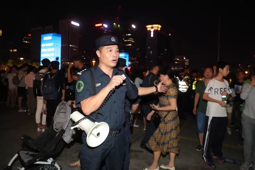 “注意安全,不要擁擠,照顧好老人和小孩?!蹦硰V場擁擠的人群中,福田公安分局機動訓練大隊副大隊長黃裕青拿著大喇叭喊道。他的臉熱得通紅,汗珠大顆大顆地往下掉,但卻始終沒停下巡邏的腳步。嗓子沙啞了,他便喝口水潤潤,繼續在人群中穿梭,在維護秩序的同時,為有需要的人提供幫助。