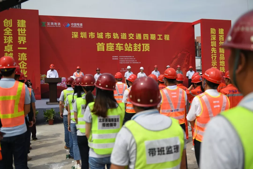 ▲深圳市城市軌道交通四期工程首座車站-洲石路站封頂儀式現場