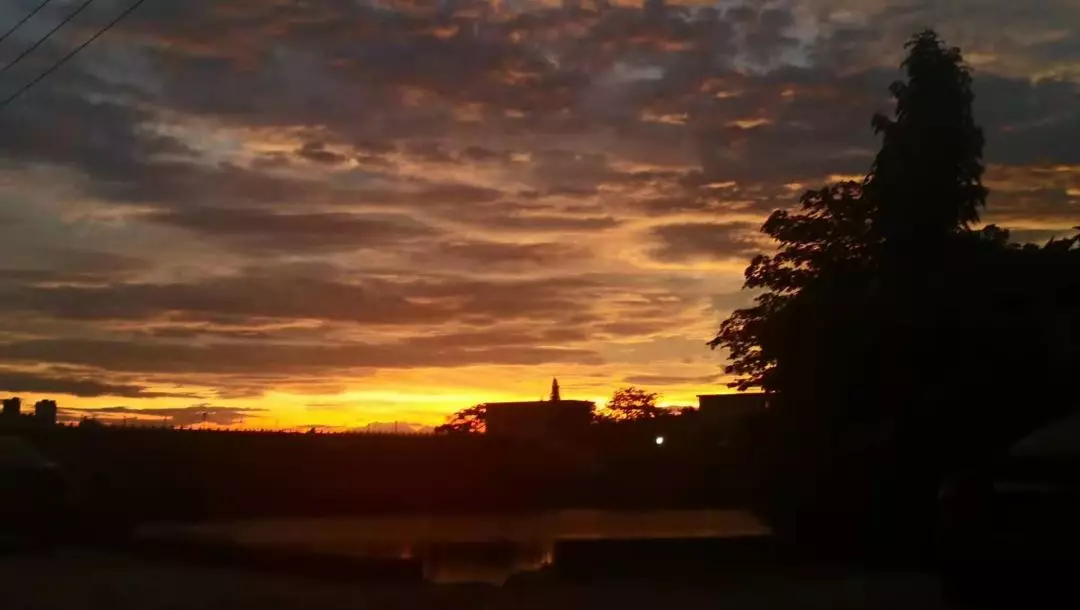 #深圳晚霞#應該就是在氣象上所說的臺風來臨前的“反暮光”。它一般在臺風來襲前一兩天的日落時分出現,西方地平線下發出數條放射狀、紅藍相間的光芒,發射到天頂,然后收斂于東方與太陽對稱的地方,映紅整個天空。