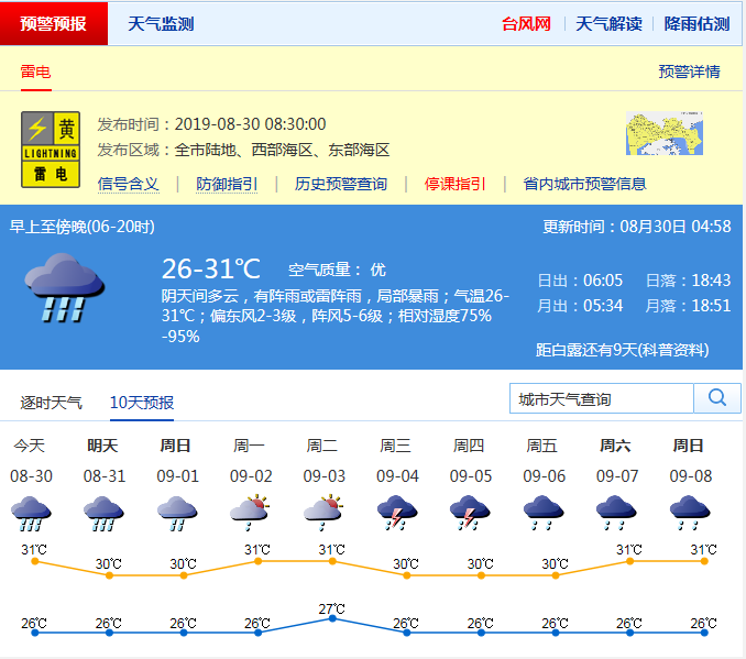 見圳客戶端·深圳新聞網2019年8月30日訊 今天多云間陰天,轉中到大雨,局部暴雨;26-31℃;偏東風2-3級,陣風6-7級;濕度75%-95%。臺風“楊柳”未來趨向越南,繼續遠離我市。預計31日至9月1日深圳多雷雨,局部暴雨,2-3日有短時陣雨。