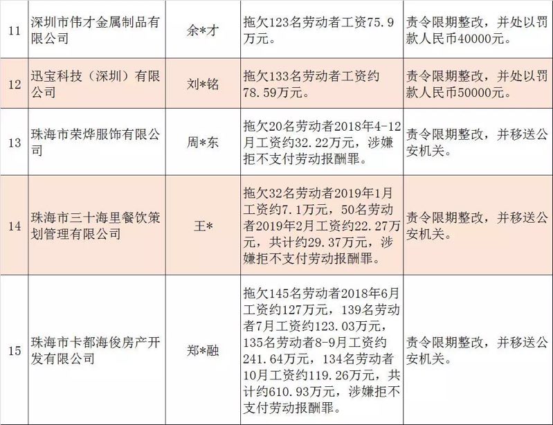 深圳特區報2019年9月17日訊 深圳又有10家欠薪企業被曝光!16日,記者從深圳市人力資源和社會保障局獲悉,深圳重拳打擊侵犯勞動者權益的黑心企業,依法處罰處理,對涉嫌犯罪的堅決移送司法機關毫無手軟。