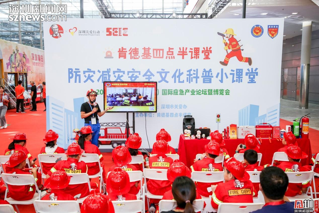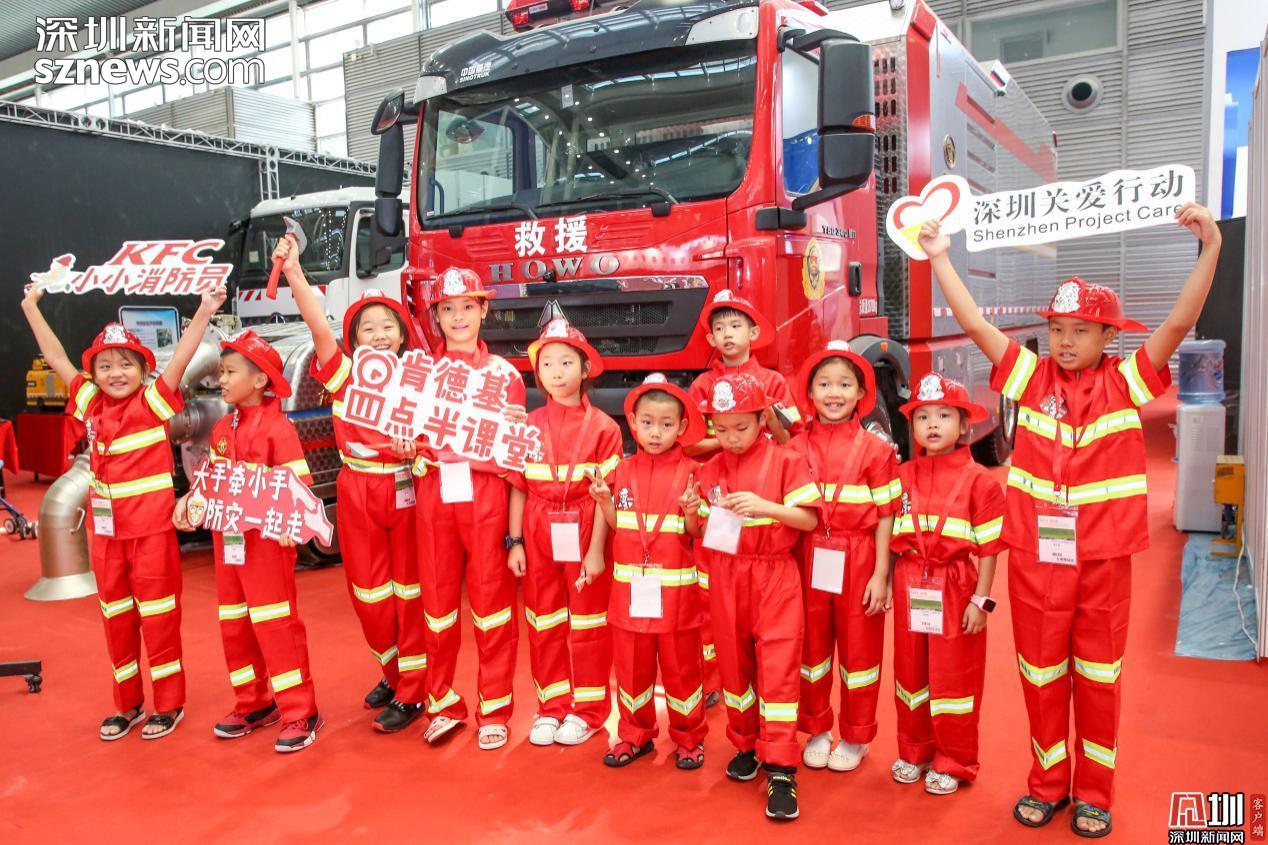 見圳客戶端、深圳新聞網2019年9月23日訊(見圳客戶端、深圳新聞網記者 陳彬)頭戴消防安全帽,手持mini滅火器,身穿靚麗正紅的消防服裝,9月21日,在深圳會展中心的深圳國際應急博覽會上,一群可愛的小小消防員們吸引了全場的目光。原來,這是“肯德基四點半防災減災科普小課堂”正在深圳國際應急博覽會上舉行。30名小朋友們裝備齊全,神采奕奕地 cosplay了一把“小小消防員”。他們認真聽消防教官的科普演講,參觀消防教育科普雙層巴士,近距離感受消防車、應急無人機等專業的防災救援高科技裝備的硬核魅力……獨特的消防體驗讓同學們十分興奮。