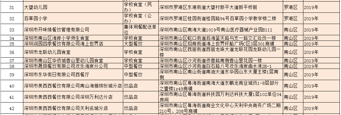 除了新增的A級餐廳外,該局還公布了降級餐廳名單:深圳市龍崗區龍崗街道培英幼兒園食堂因不符合餐飲服務食品安全量化等級A級要求予以降級。以及1家變更單位名稱的A級餐飲服務單位:原名稱為深圳市光明區培真幼兒園食堂的單位變更名稱為:深圳市光明區鳳凰街道嘉明幼兒園食堂。