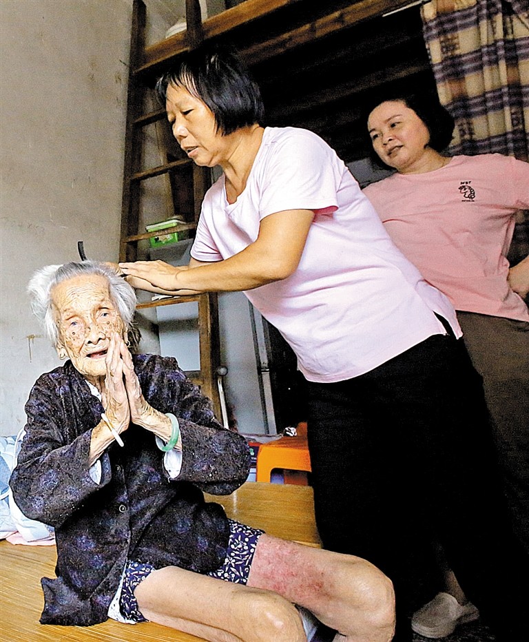 陳汝金老人喜歡打本地花牌,打到了99歲,后來腰部退化,不能久坐,她才沒有再打花牌。吃飯方面,陳汝金也有自己的主張,不求好不求貴,簡簡單單活到老,“外婆以前是生產隊的炊事員,直到去年她還能自己做飯呢。”在文小姐看來,如此長壽的外婆也沒有特別的養生之道,“保持好心態,順其自然就是最長壽的秘方?!?/p>