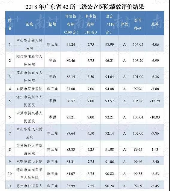 2018年廣東省42所二級公立醫院績效評價中包含深圳2家醫院,其中