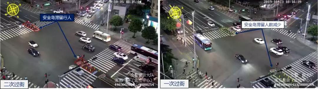針對這一問題,深圳交警根據路口各時段、各方向的通勤需求,調整優化了路口紅綠燈配時方案,適當增加了擁堵方向時間。優化后,路口晚高峰西往東方向車輛排隊由300多米降至60米左右,下降80%,車輛基本實現1次通行。