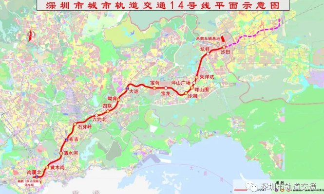 站點:崗廈北、黃木崗、清水河、布吉、石芽嶺、六約北、四聯(lián)、坳背、大運、寶荷、寶龍、沙湖、坪山圍、坪山廣場、朱洋坑、坑梓、沙田