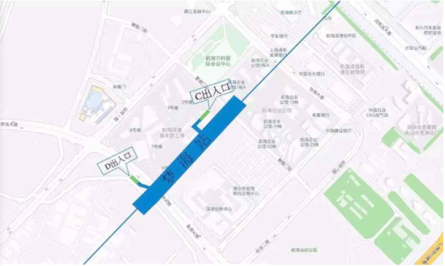 夢海站位于前海深港現代服務業合作區夢海大道(原振海路)與規劃支路交叉口下方,出入口共計2個,C出入口位于鯉魚門九街北側,靠近青年夢工廠,D出入口位于夢海大道西側