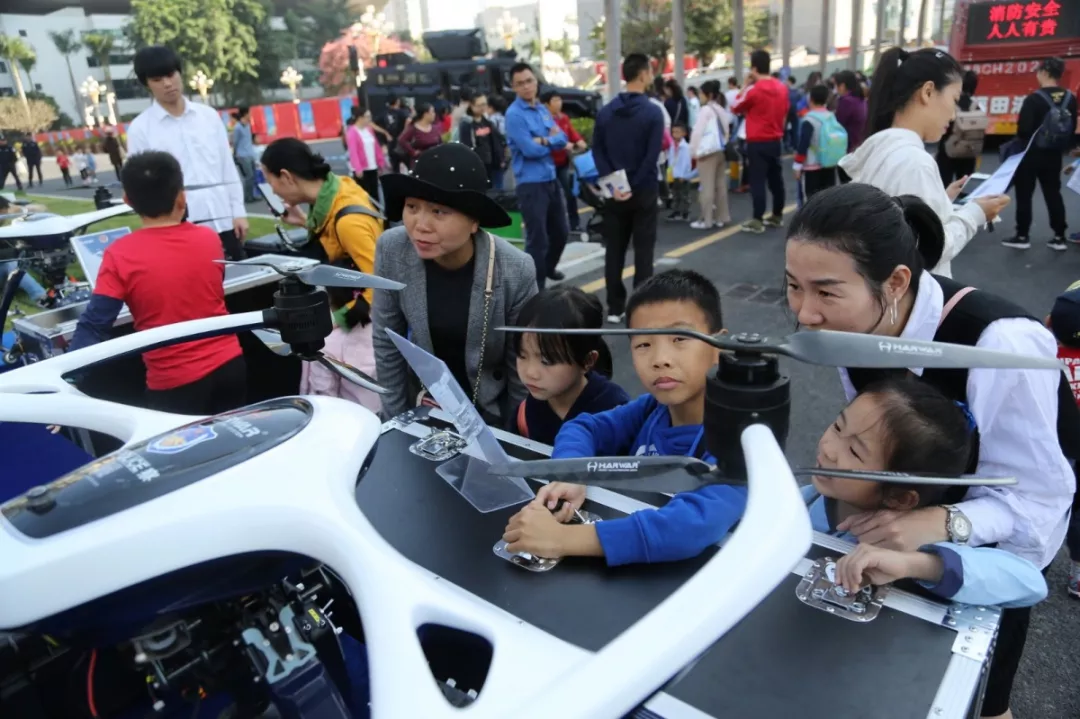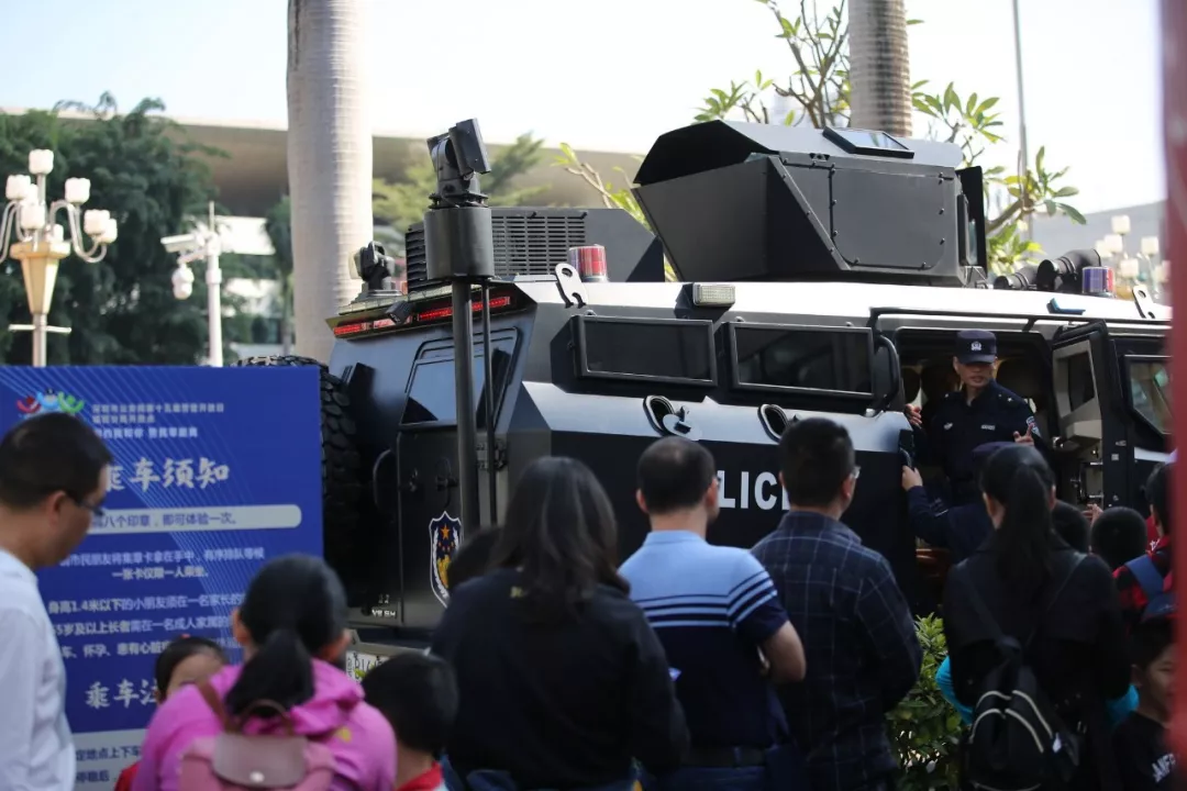 防暴頭盔、防爆盾牌、槍支警械、無(wú)人機(jī)、反恐車酷勁兒十足。大家興致勃勃地穿戴警用裝備,過(guò)一把警察癮,圓一回警察夢(mèng),做“圳”里最靚的仔!