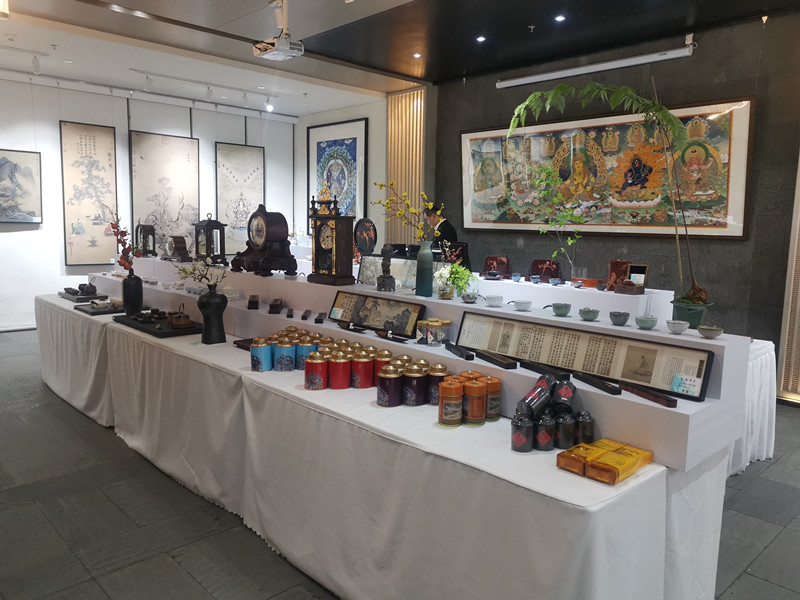 此外,本次的唐卡藝術展展出了唐卡精品卷軸掛畫30余件,唐卡被稱為藏族的”百科全書”,也是中華民族民間藝術中彌足珍貴的非物質文化遺產。現場還同時展出唐卡繪制的各類工具原材料、藝術藏品,讓觀眾在現場近距離感受到其獨特的民族藝術魅力。
