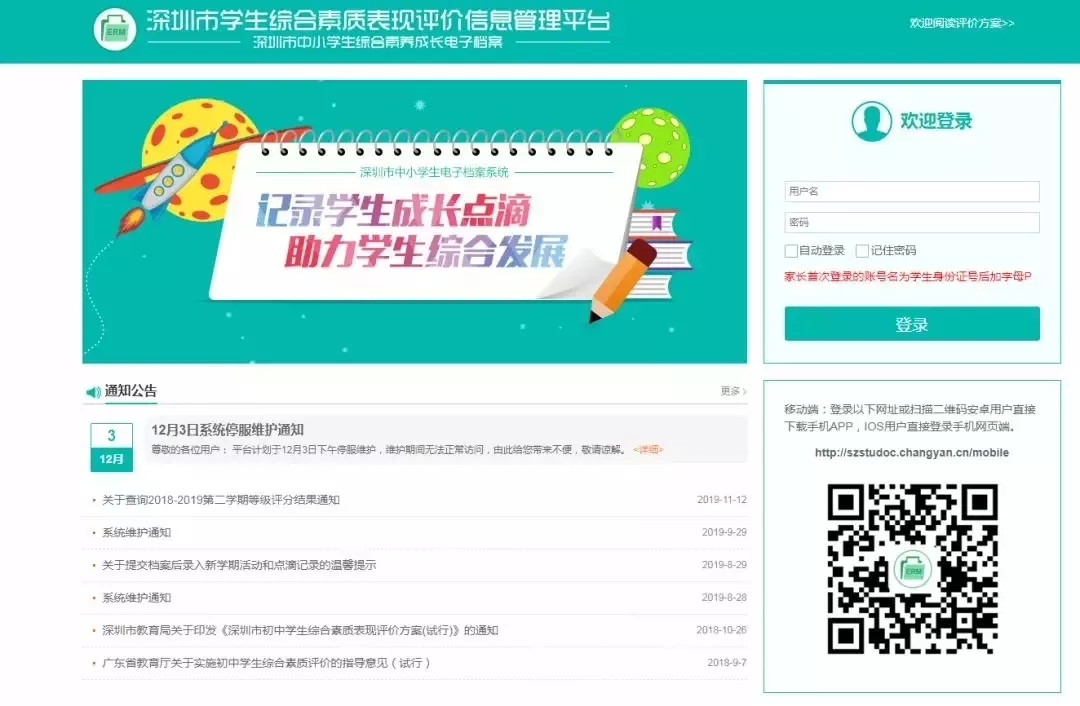 ▲深圳市學生綜合素質表現評價平臺截圖