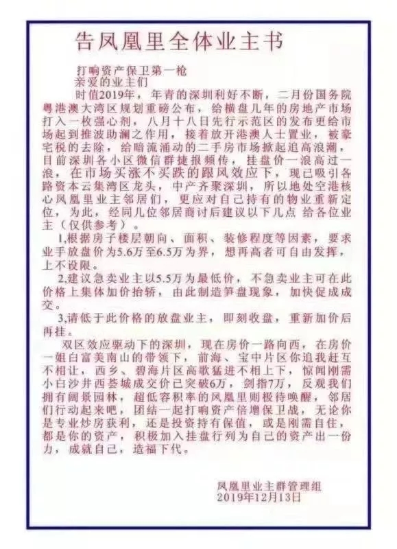 近日,福海街道中糧鳳凰里花苑小區個別業主發布集體漲價言論,涉嫌惡意炒作二手房價,以下為網傳業主倡議書