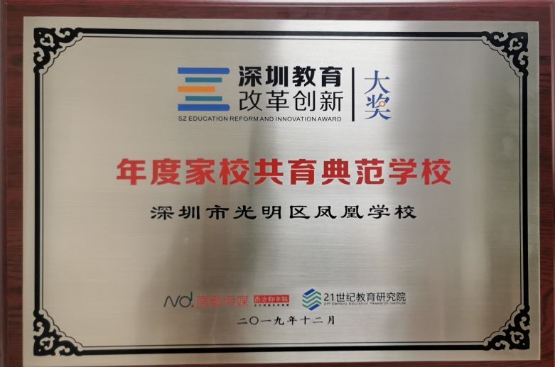 在今年的各項年度教育改革創新大獎的角逐中,經過初評、網絡投票(部分)以及終評,光明區鳳凰學校榮獲“年度家校共育典范學校”!