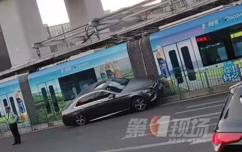 原標題:突發!龍華一奔馳車撞上有軌電車 事故并未造成人員受傷