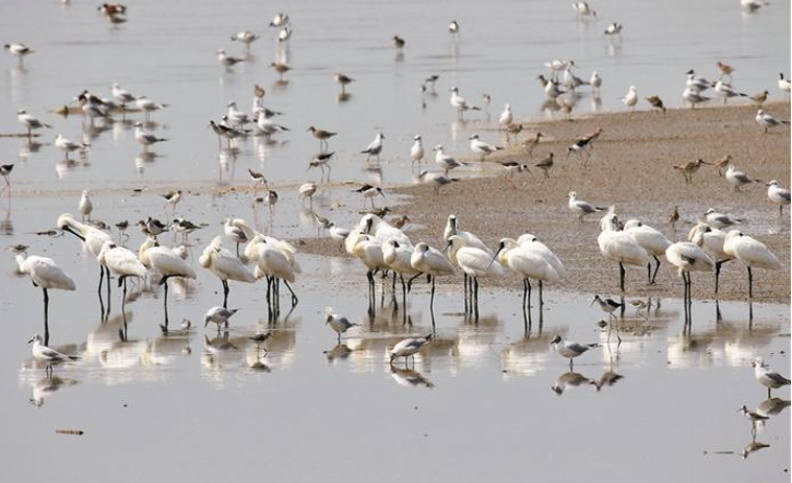 密密麻麻,在17日至19日舉行的2020年黑臉琵鷺全球同步普查中,福田紅樹林自然保護區單日錄得35只黑臉琵鷺,創今年紀錄