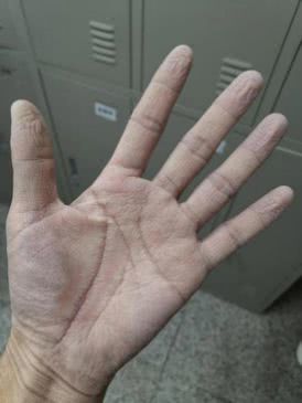 28歲的王濤下夜班后,脫下厚厚的防護服,摘下手套,用手機拍下了自己習以為常的手。