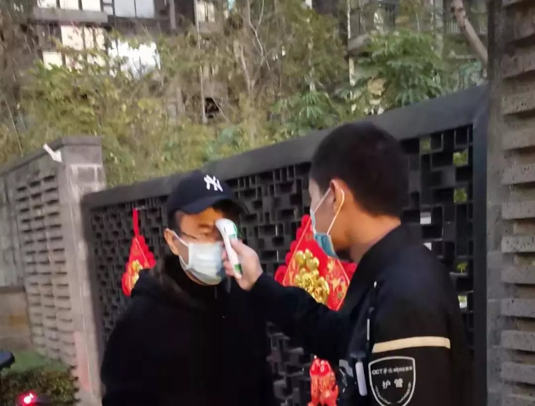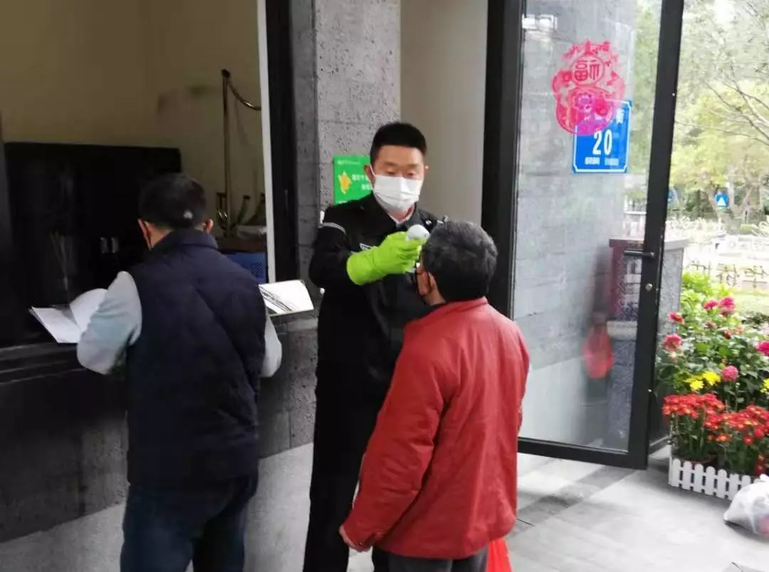對車輛和人員出入取消刷卡自動開閘,改為手動出入開閘,禁止外來人員出入;門口、車道崗配備測溫儀,對所有進出小區人員進行體溫測量,并做好登記。