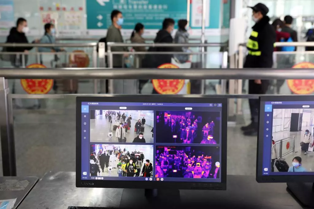 出站旅客的體溫實時顯示在電腦屏幕上,一旦發現體溫異常人員,系統馬上自動發出警告。