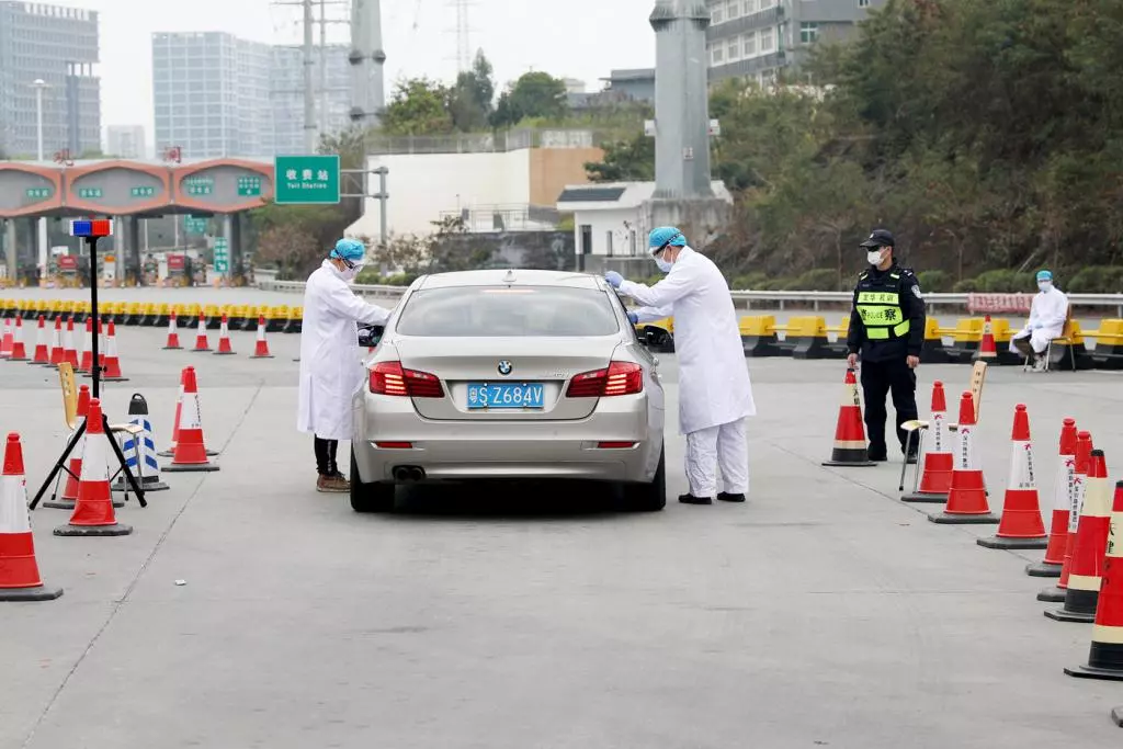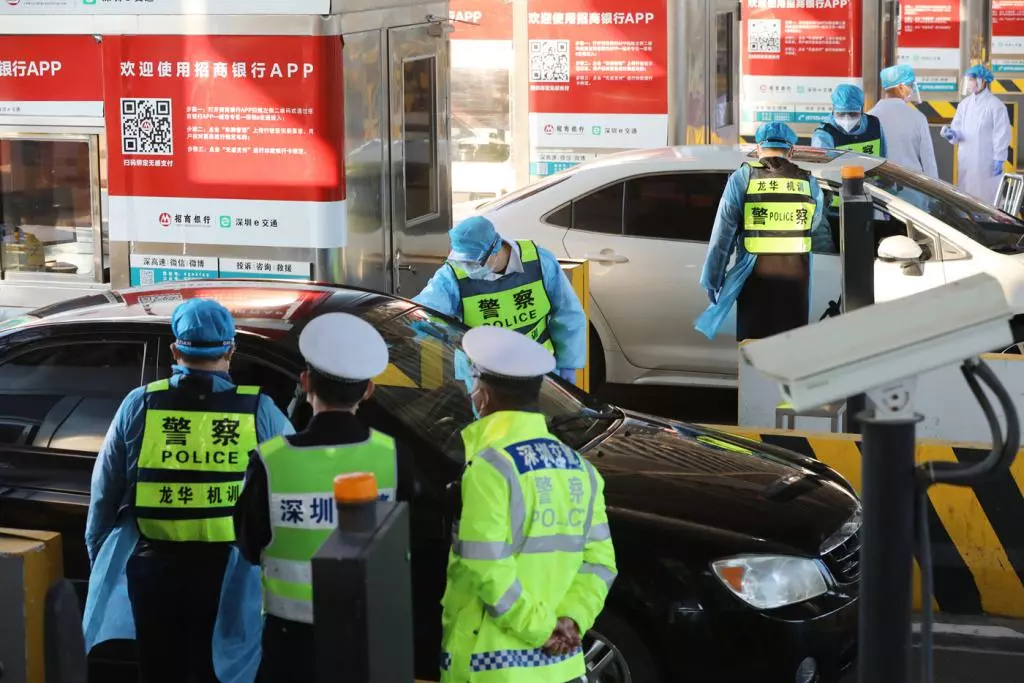 2月2日中午,深晚記者來到梅觀高速觀瀾收費站,發現這里開通了4條車道供車輛通行,現場有超過20名民警、醫務人員檢測入深車輛司乘人員的體溫。
