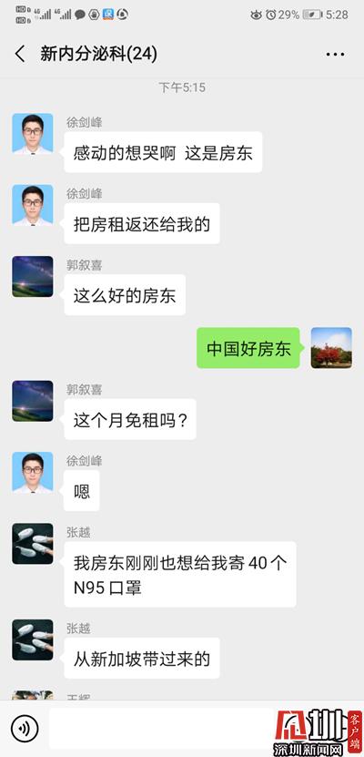 2日上午,寶安中醫院(集團)隔離病房工作的徐醫生,遇到了令他十分感動的事。他通過微信向房東交房租,房東問他是不是在防控前線工作,徐醫生以為房東怕傳染而嫌棄他,連忙向房東解釋自己做好了防護消毒,不用擔心,沒想到房東直接把房租退了回去,表示要支持徐醫生在前線工作,真是暖心啊!
